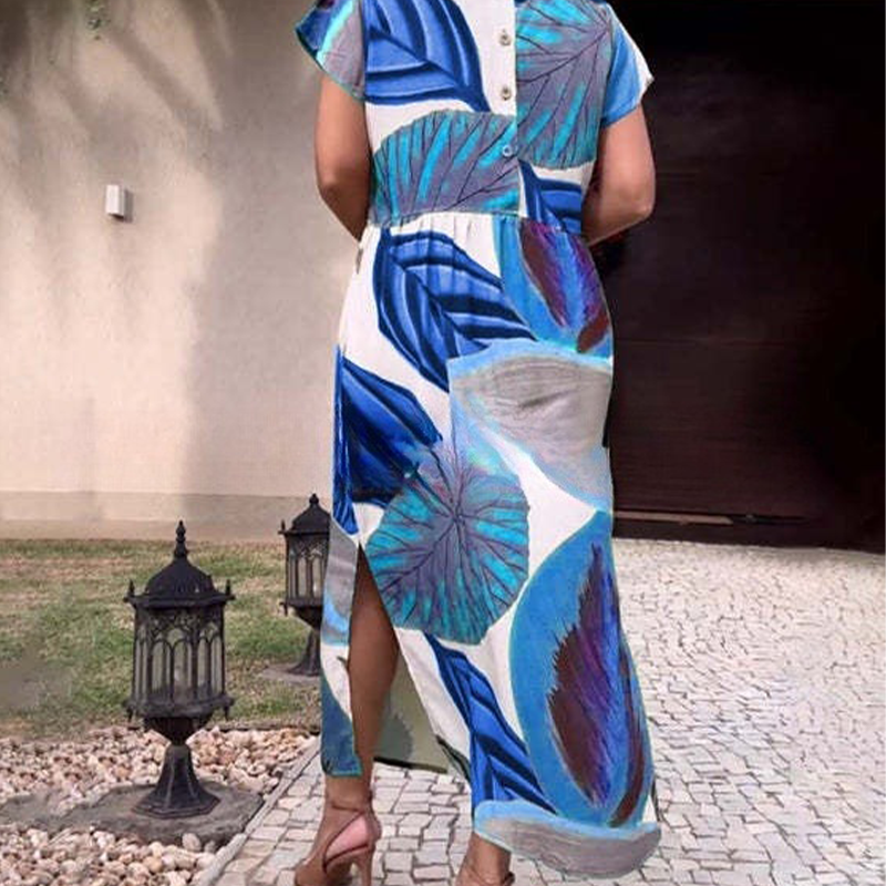 🌸 Φορέματα με κοντά μανίκια και στάμπα στο πλάι για γυναίκες-GR