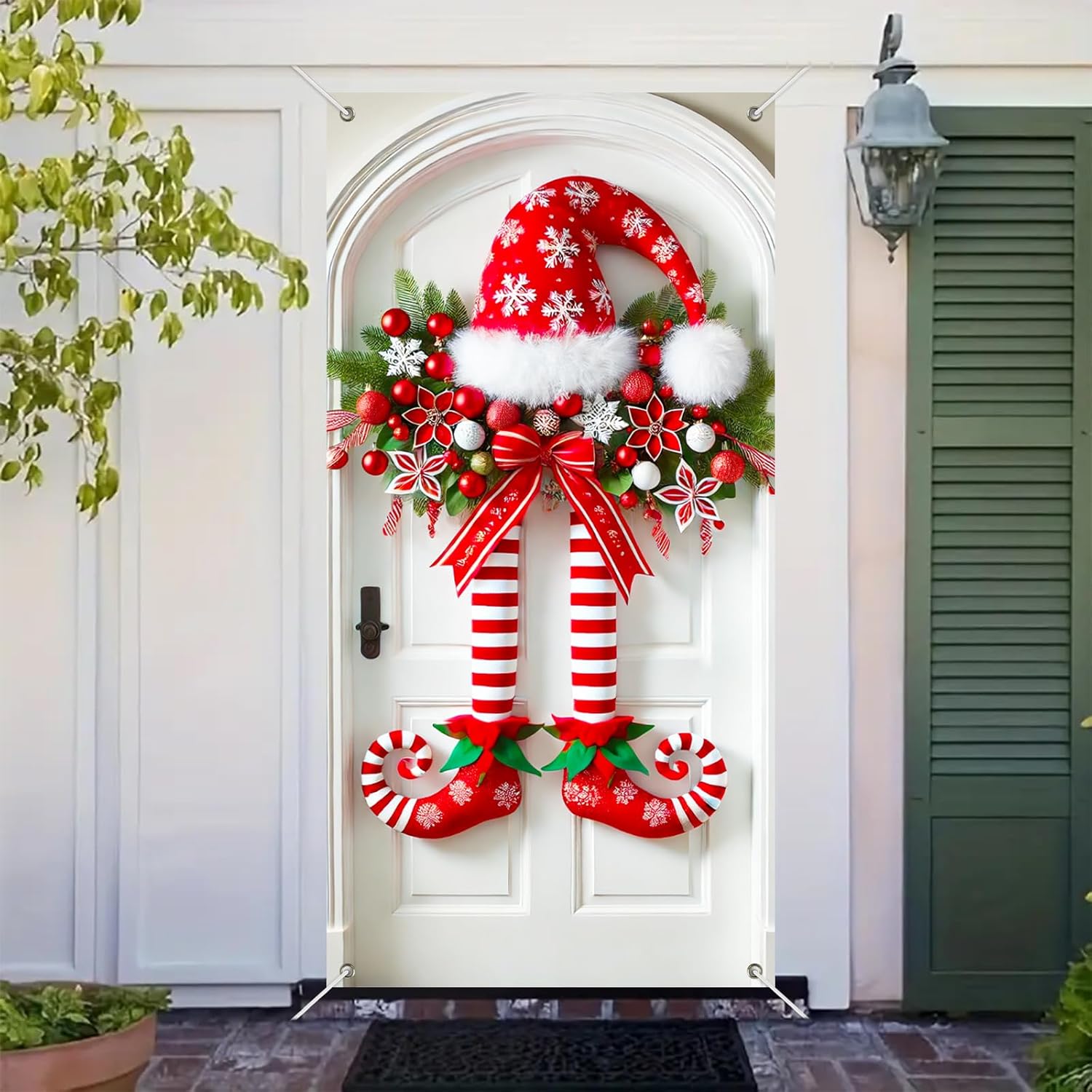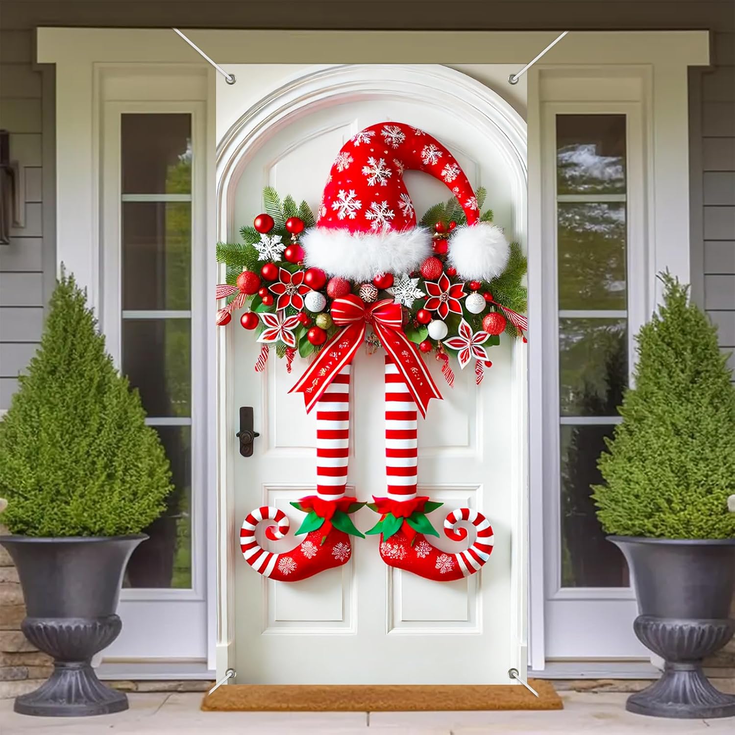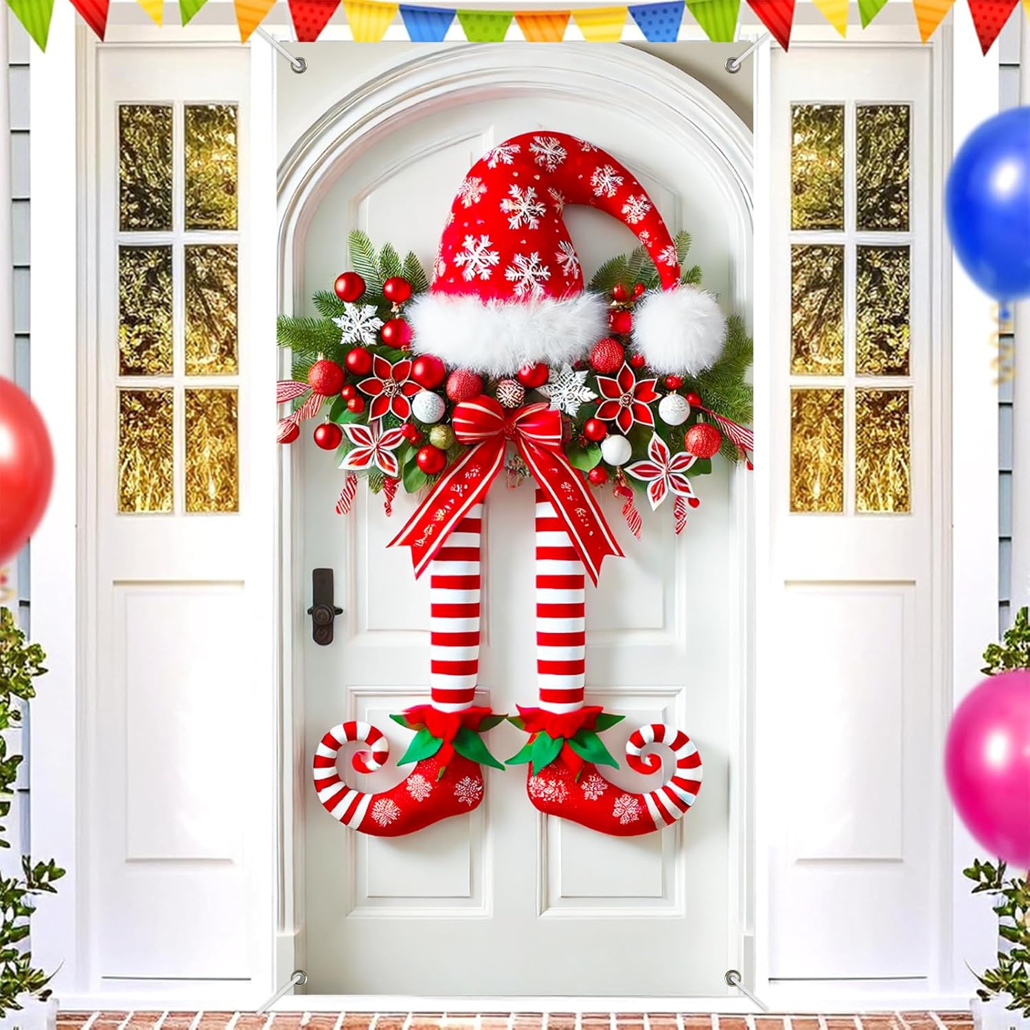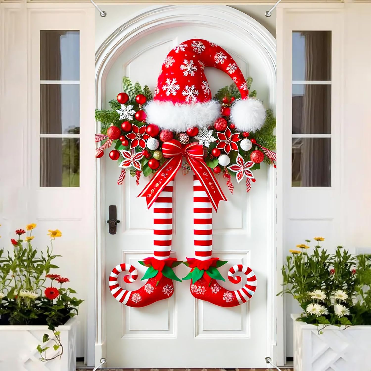 Διασκεδαστικό σχέδιο με πόδια ξωτικού: Με ριγέ πόδια ξωτικού, σγουρά μπότες, καπέλο με νιφάδα χιονιού και εορταστικές διακοσμήσεις, αυτό το πανό δημιουργεί μια ζωντανή χριστουγεννιάτικη ατμόσφαιρα στη βεράντα ή το πάρτι σας.