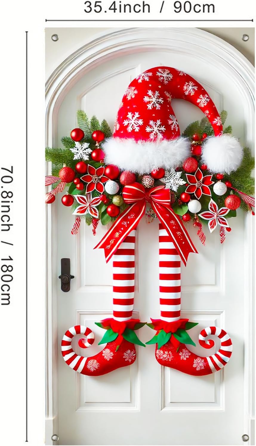 Μεγάλο μέγεθος: Αυτό το χριστουγεννιάτικο πανό πόρτας 71x35 ιντσών έχει σχεδιαστεί για να καλύπτει τις περισσότερες μπροστινές πόρτες, φέρνοντας μια ιδιόμορφη πινελιά εορταστικής χαράς σε κάθε διακόσμηση τοίχου ή εισόδου.