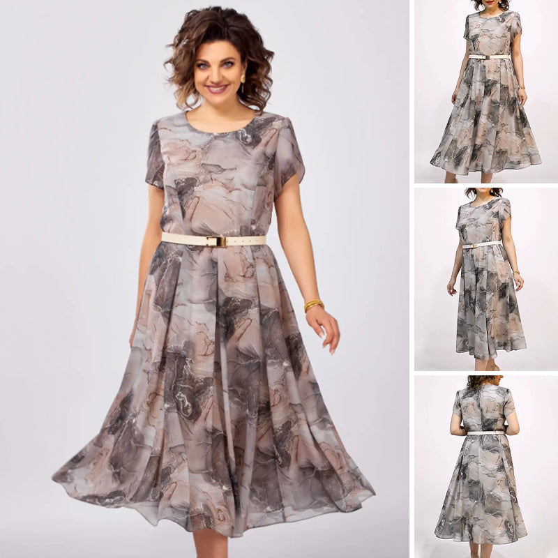 Η συσκευασία περιλαμβάνει: Σύνθεση: 1* Γυναικείο κομψό μίντι φόρεμα με κοντά μανίκια και στρογγυλή λαιμόκοψη.