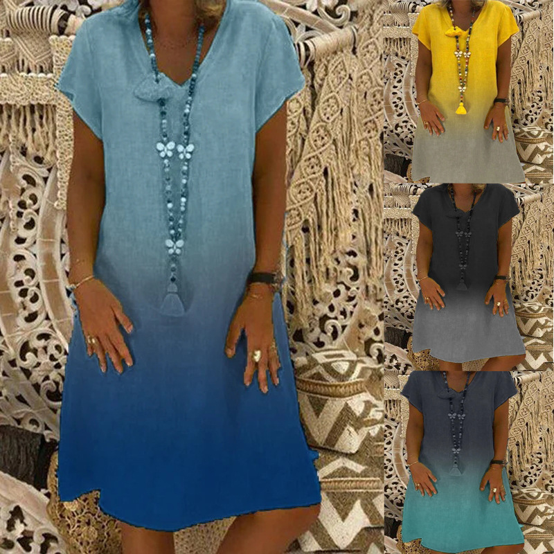 💃 Laisvalaikio suknelė su V formos iškirpte ir trumpomis rankovėmis gradiento stiliaus-LT