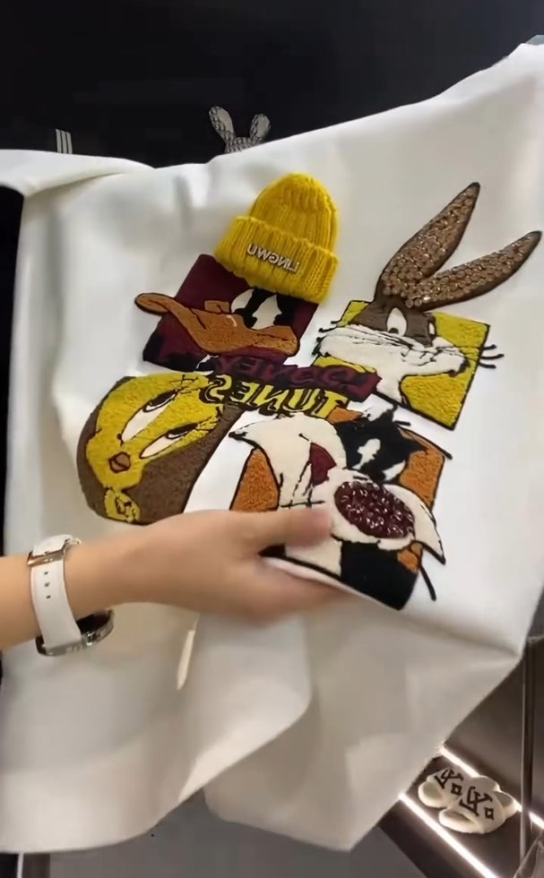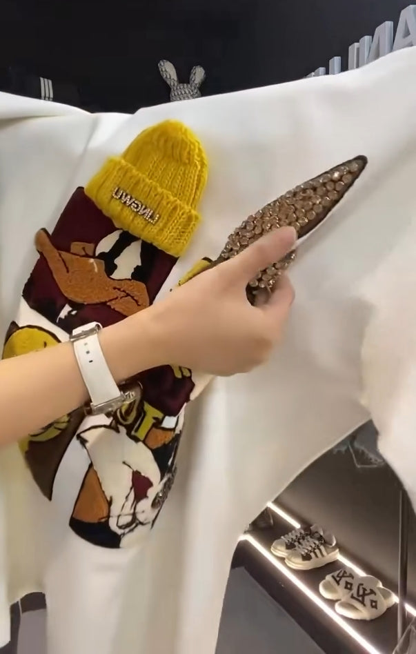 🍭Čudljiv pulover z risanimi bleščicami-SI