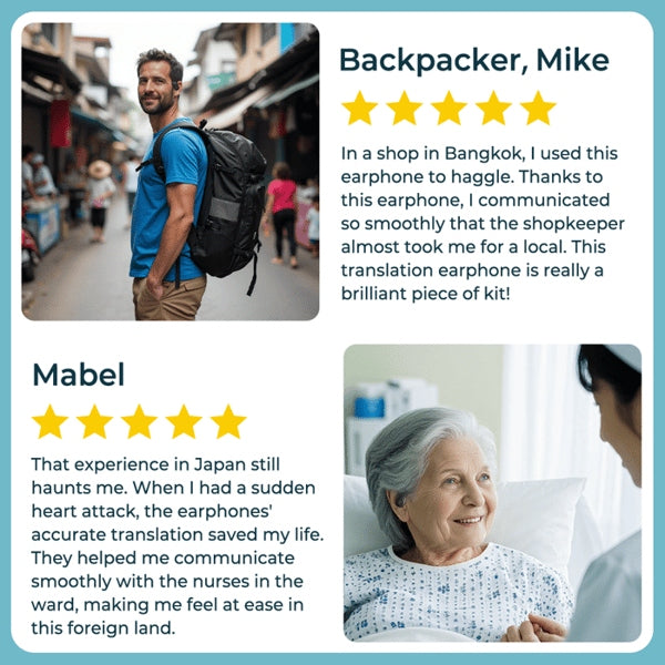 Με τα ακουστικά μας, μπορείτε εύκολα να μεταφράζετε και να επικοινωνείτε με άλλα άτομα σε πραγματικό χρόνο. Απλώς δώστε στον σύντροφό σας ακουστικά και θα μεταφράσει τη συνομιλία σας.