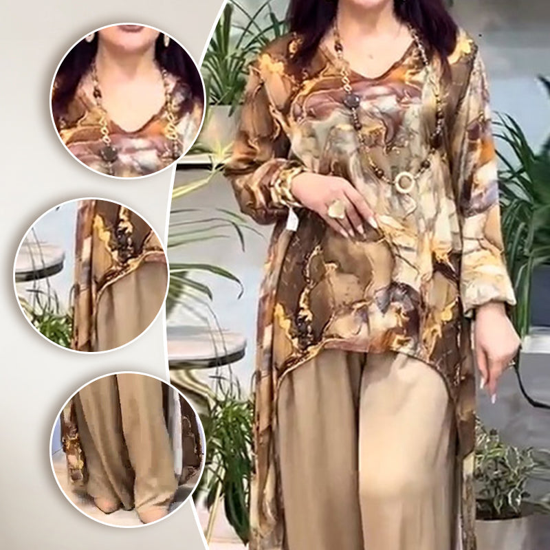 ❤️Γυναικείο σετ δύο τεμαχίων με μοντέρνο τυπωμένο τοπ και παντελόνι-GR