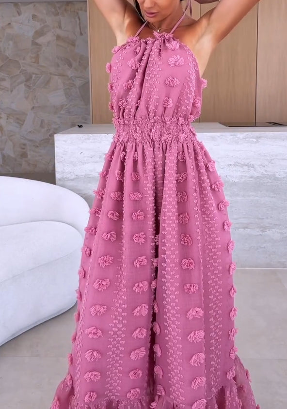 Vasarinė moteriška madinga suknelė su atvira nugara ir dideliu skeltuku-LT