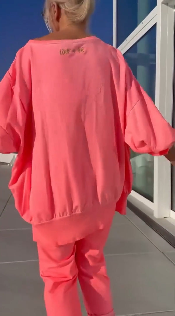 Vasarinis moteriškas apvalios iškirptės, šviesios spalvos laisvalaikio kostiumas-LT