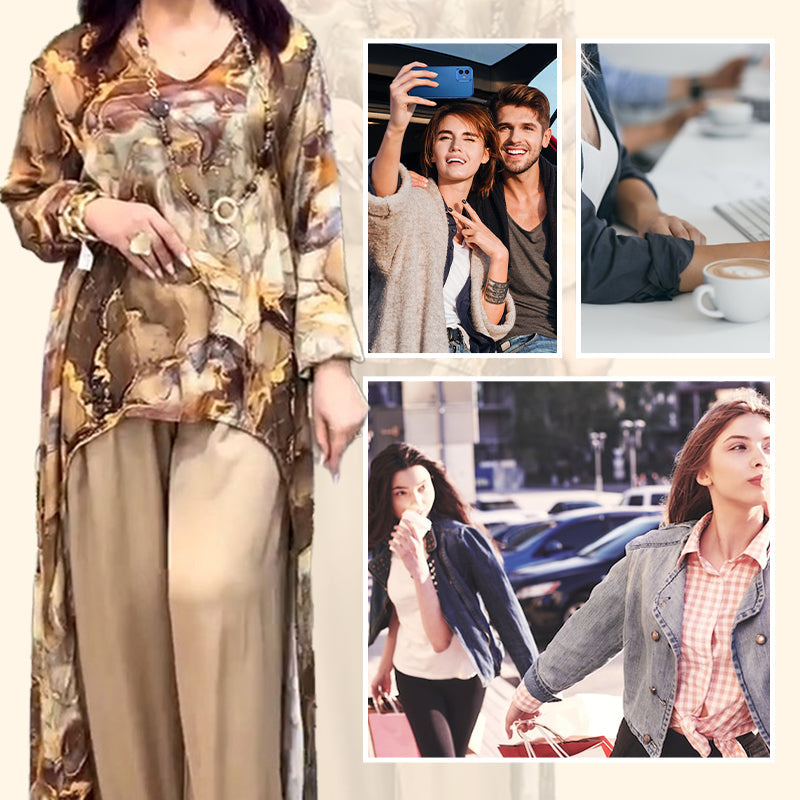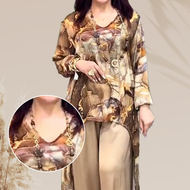 ❤️Moteriškas dviejų dalių komplektas su madinga spausdinta palaidine ir kelnėmis-LT
