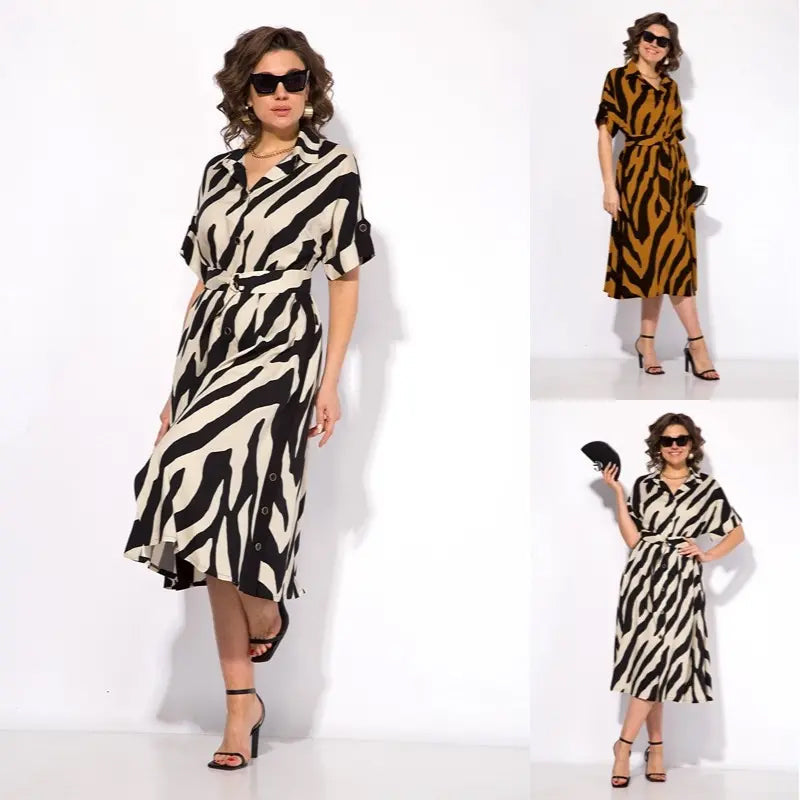 1 × Moteriška dryžuota suknelė V formos iškirpte