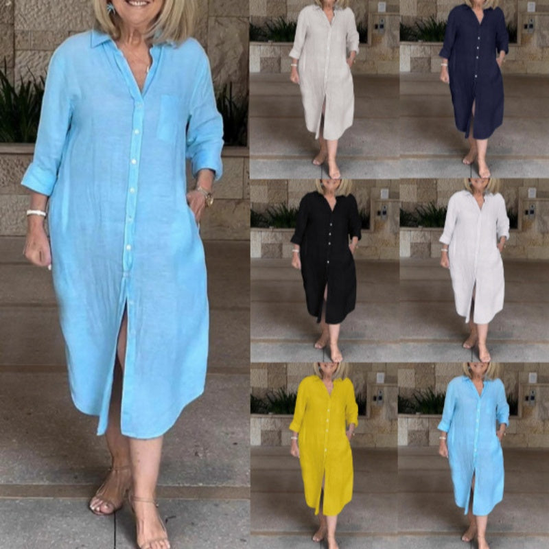 🔥 Laisva medvilninė lininė suknelė moterims-LT