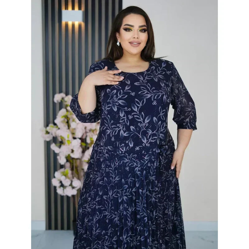 Η συσκευασία περιλαμβάνει: 1* Φόρεμα Maxi με στρογγυλή λαιμόκοψη και μανίκια 3/4 με στάμπα