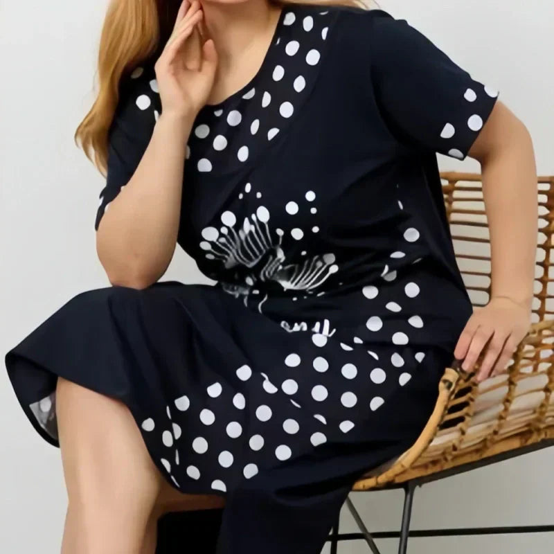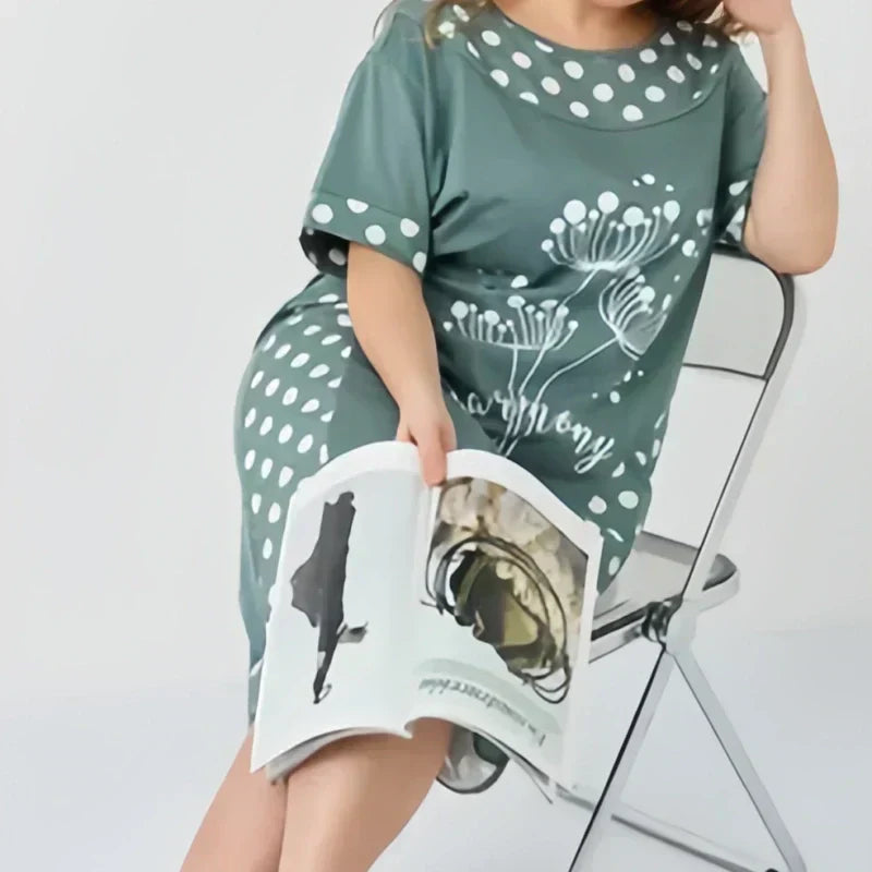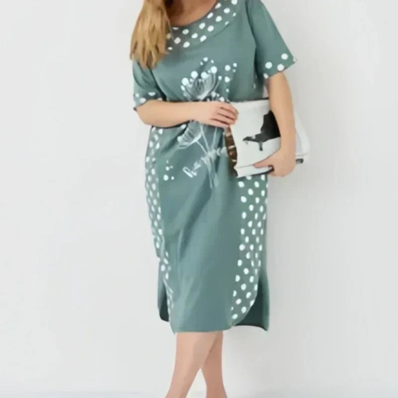 Γυναικεία καλοκαιρινά φαρδιά φορέματα με κοντά μανίκια και στάμπα σε γραμμή Α-GR