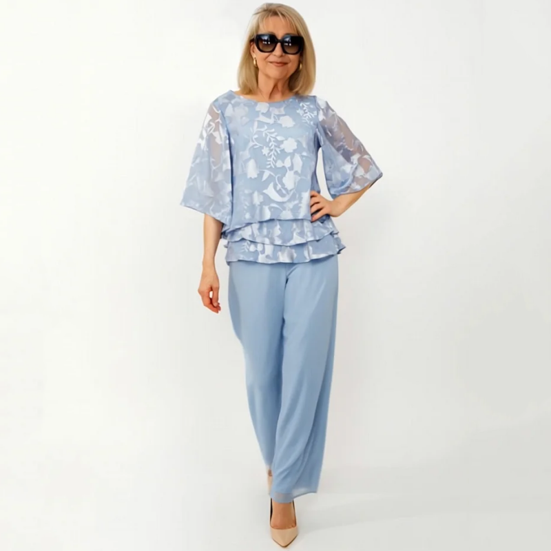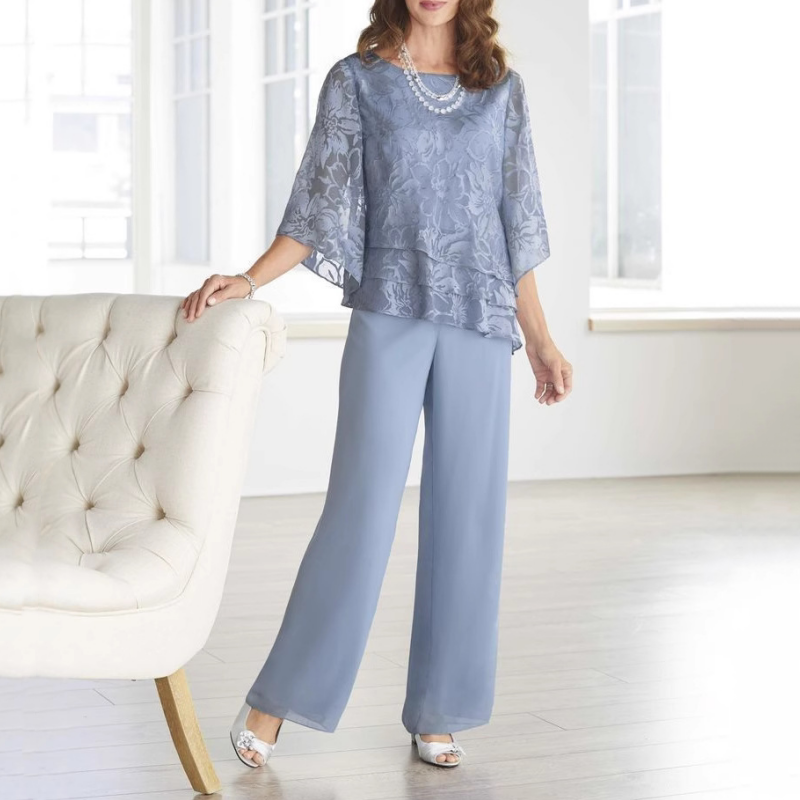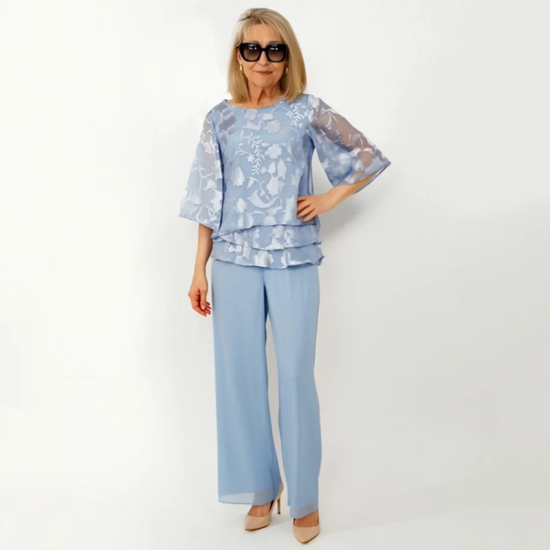 Η συσκευασία περιλαμβάνει: 1: 1 * Κομψές γυναικείες μπλούζες με στρώσεις και φαρδιά παντελόνια