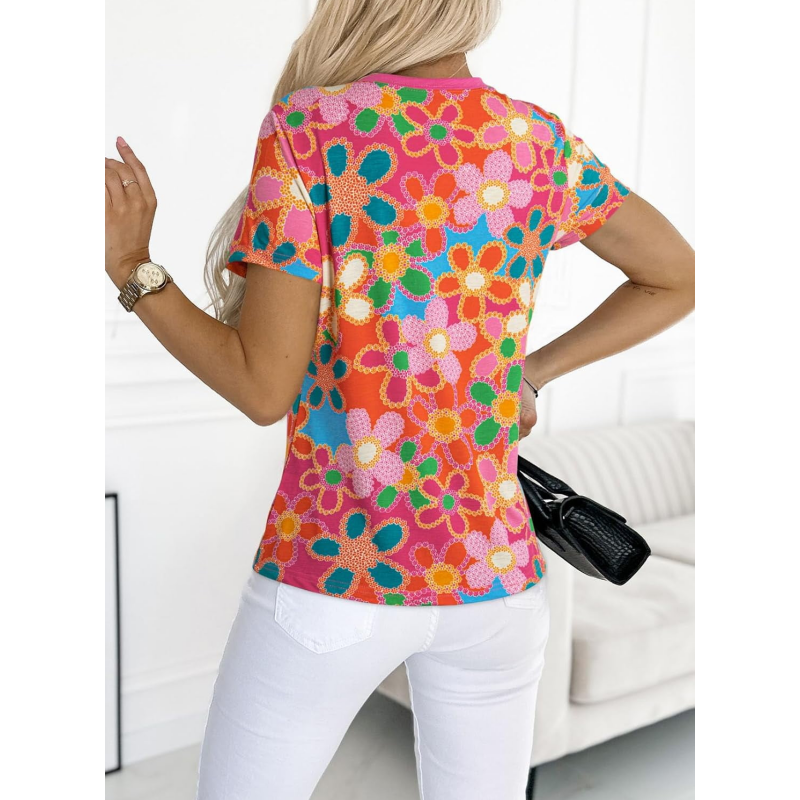 Pakiranje izdelka: 1 * Ženska roza majica s cvetličnim potiskom