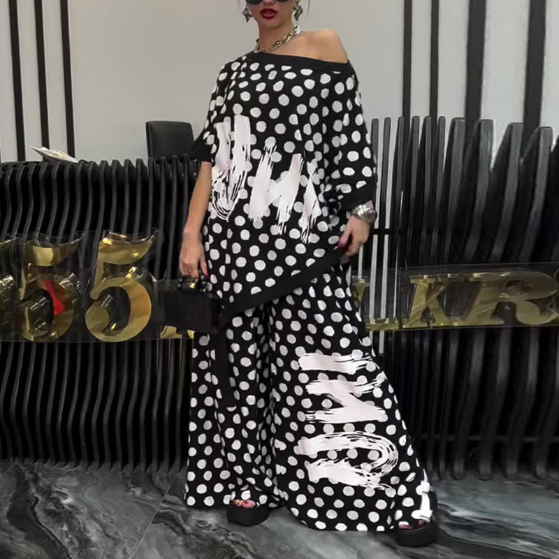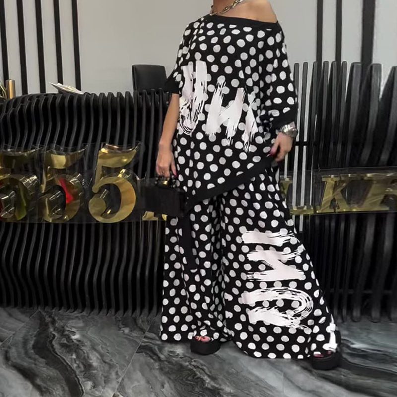 Σετ 2 τεμαχίων: oversized τοπ και παντελόνι με φαρδιά μπατζάκια για γυναίκες-GR