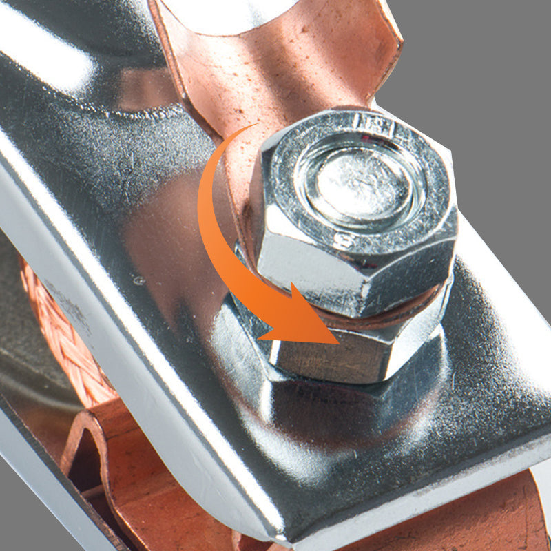 DIDELIS PROCENTAS, MAŽAS ŠILUMOS GENERAVIMAS: Spaustukas sukurtas taip, kad efektyviai praleistų srovę ir generuotų minimalų šilumos kiekį. Tai užtikrina stabilų ir saugų įžeminimą suvirinimo metu, apsaugo nuo perkaitimo ir pagerina suvirinimo aparato našumą.