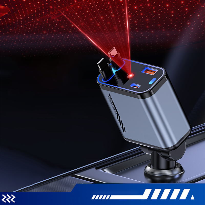 📱 Večnamenski avtomobilski polnilnik s hitrim polnjenjem in zložljivim kablom | Združljiv z vsemi pametnimi telefoni-GR